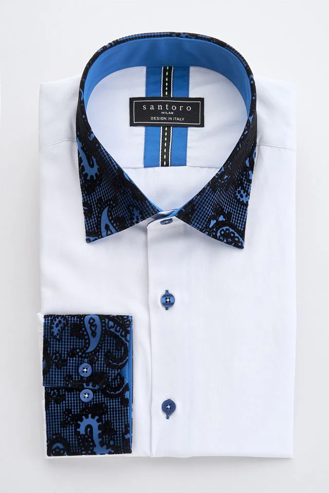 Santoro’s White Shirt with Navy Paisley Detail