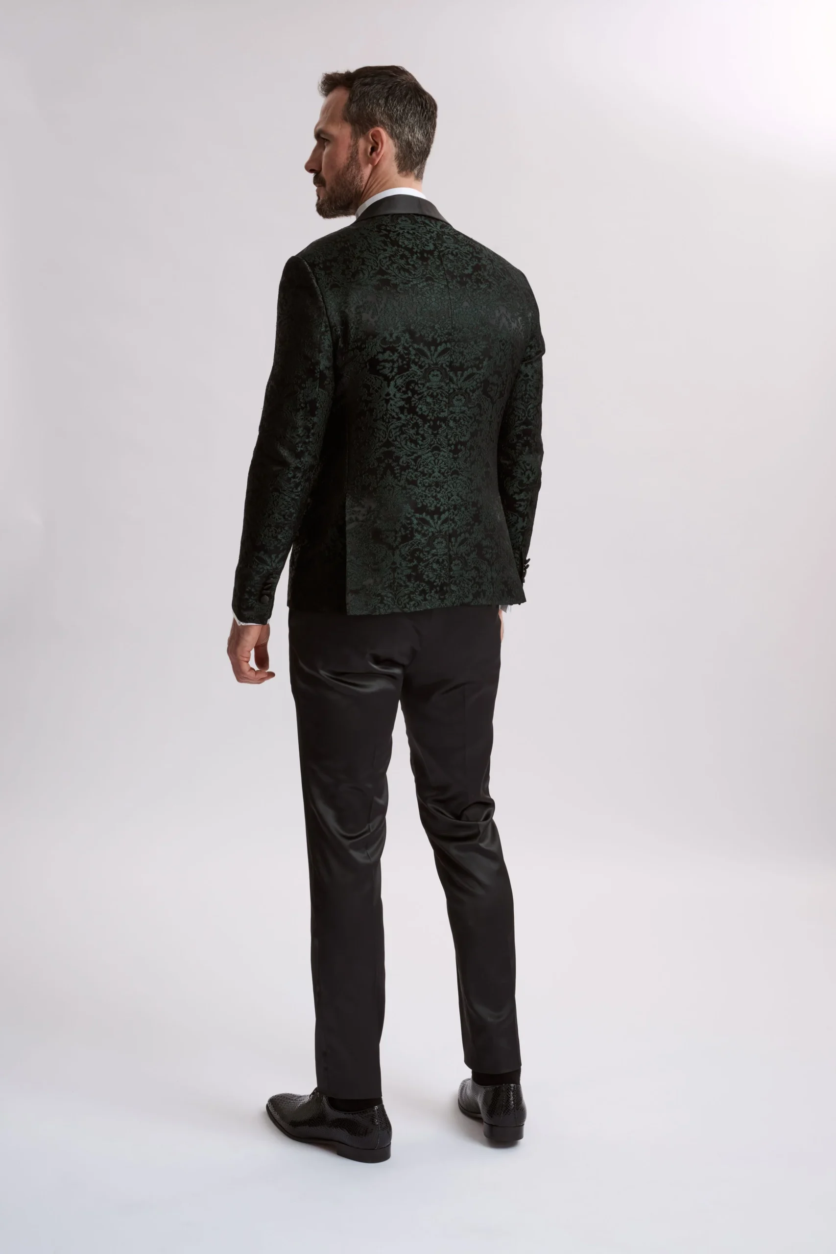 Santoro Milan’s Paisley Three Piece Brocade Olive Suit