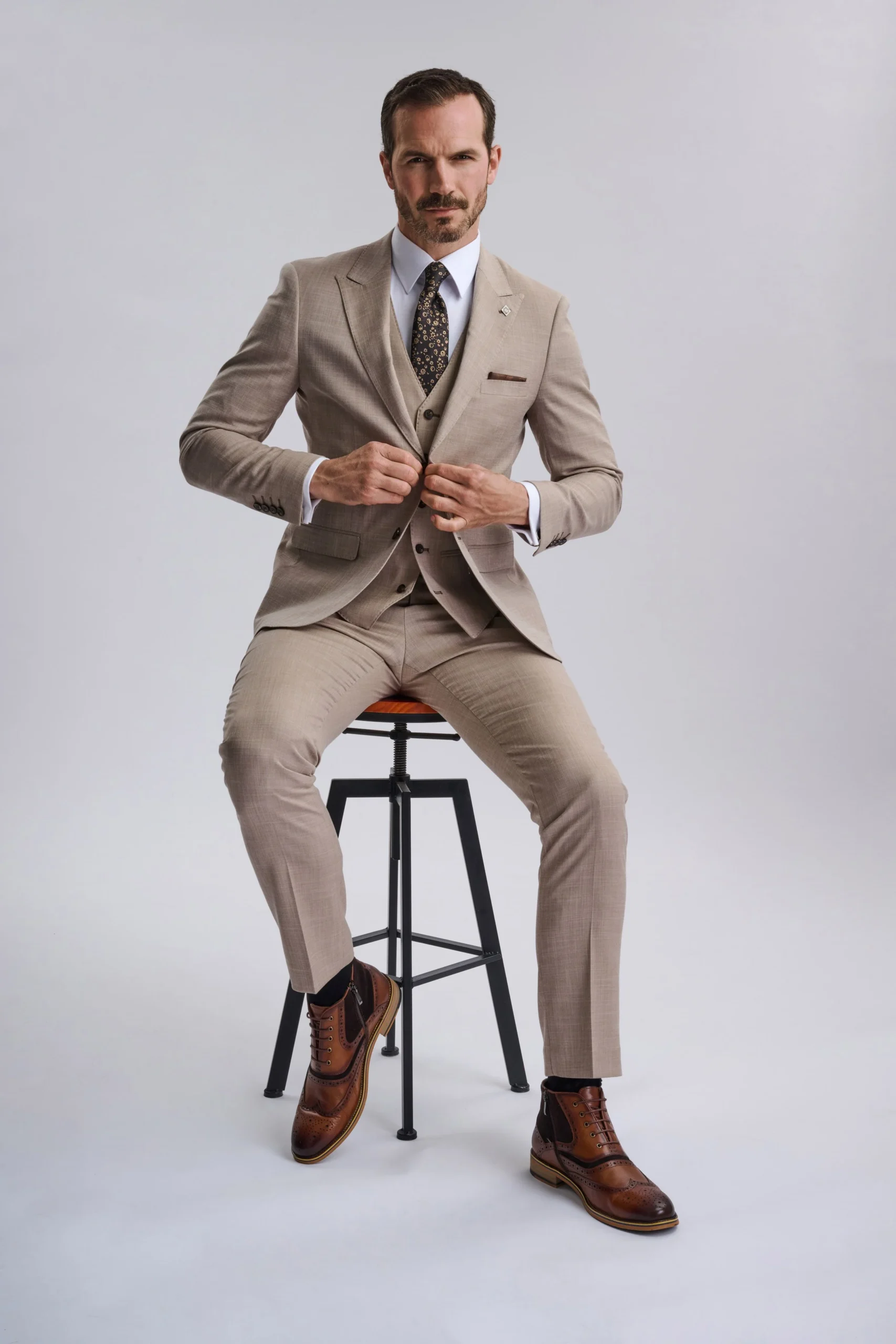 Introducing the Kurt Beige Three-Piece Suit, where classic sophistication meets contemporary style. Designed for the modern gentleman, this suit transforms ordinary moments into unforgettable impressions.