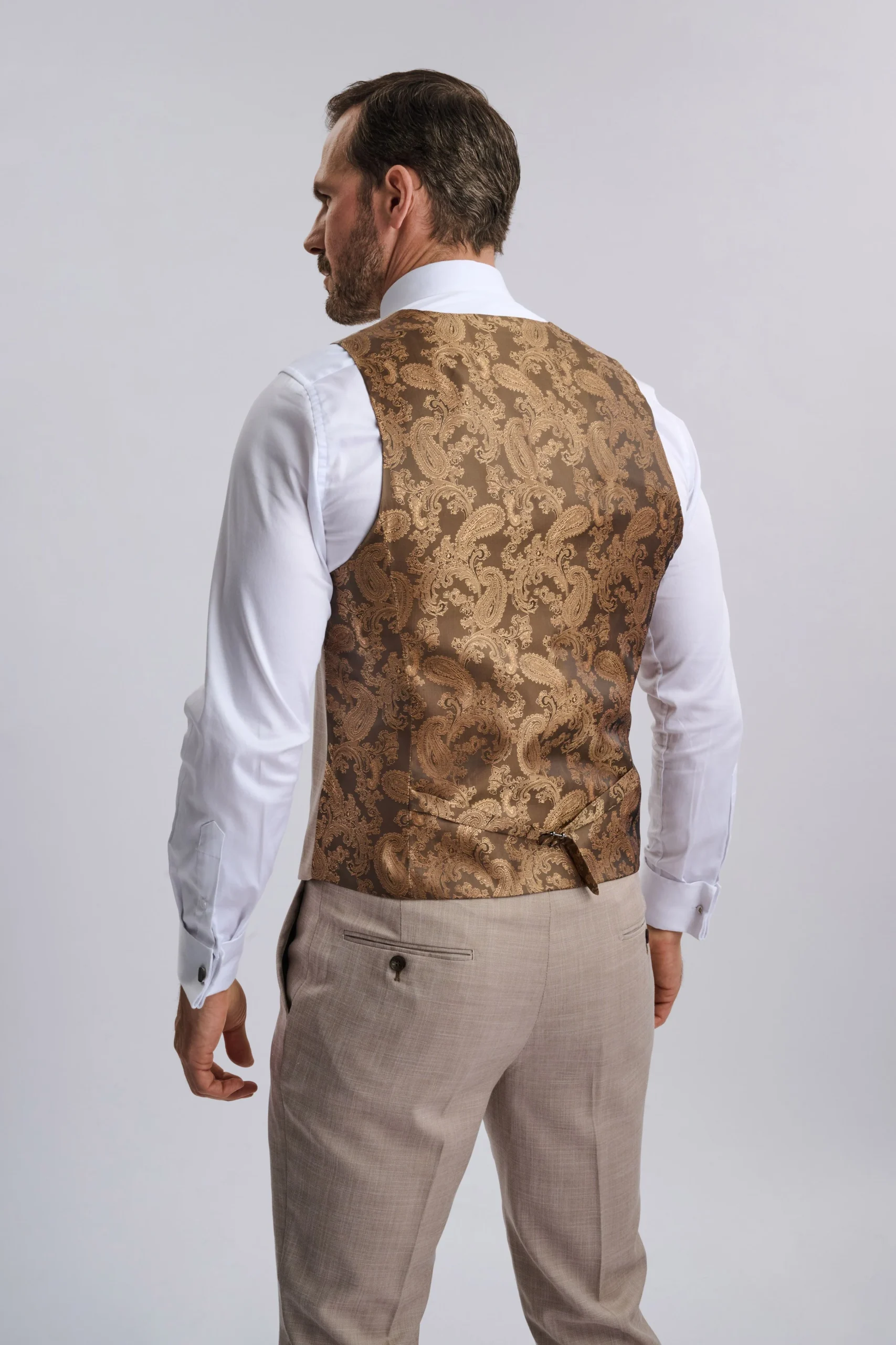 Crafted from ultra-soft, high-quality fabric, the warm beige tone brings effortless elegance, while the tailored cut ensures confidence and comfort in every step. Perfect for destination weddings, high-profile meetings, and exclusive soirées, this suit speaks volumes without saying a word.