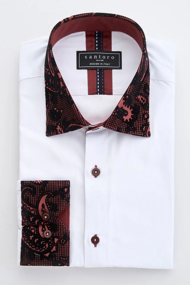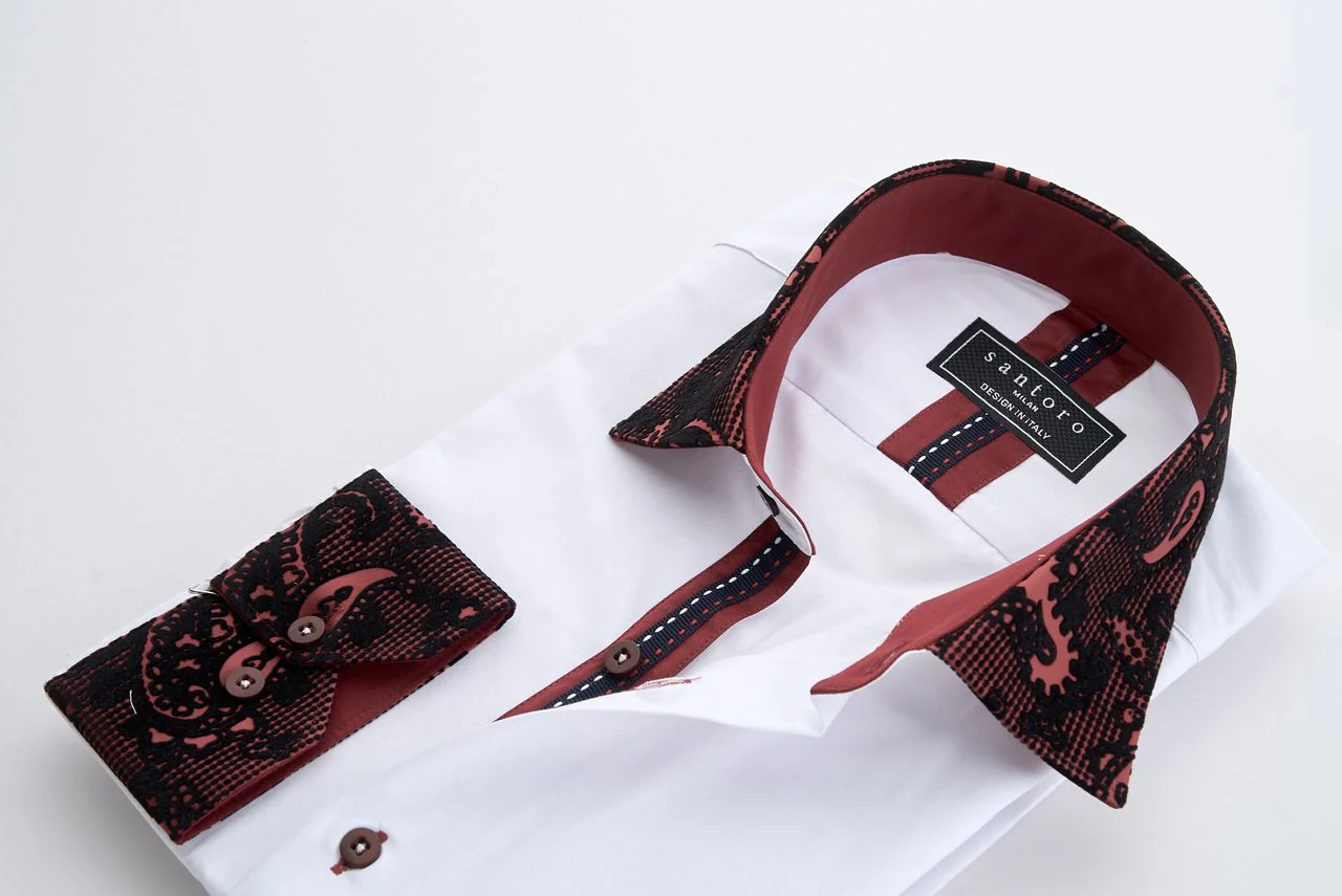 The Santoro’s White Shirt with Wine Paisley Detail is crafted for the man who understands that true elegance lies in the details.